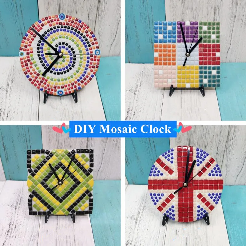 Diy Mosaic Clock Square Round Wooden Wall Clock Multicolor Ceramic