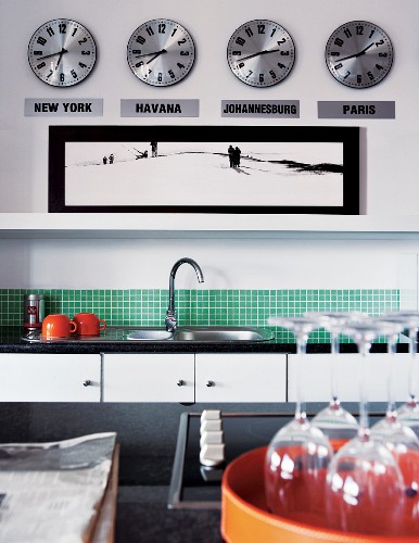 Modern Kitchen With Green Mosaic Wall Buy Image 11231236