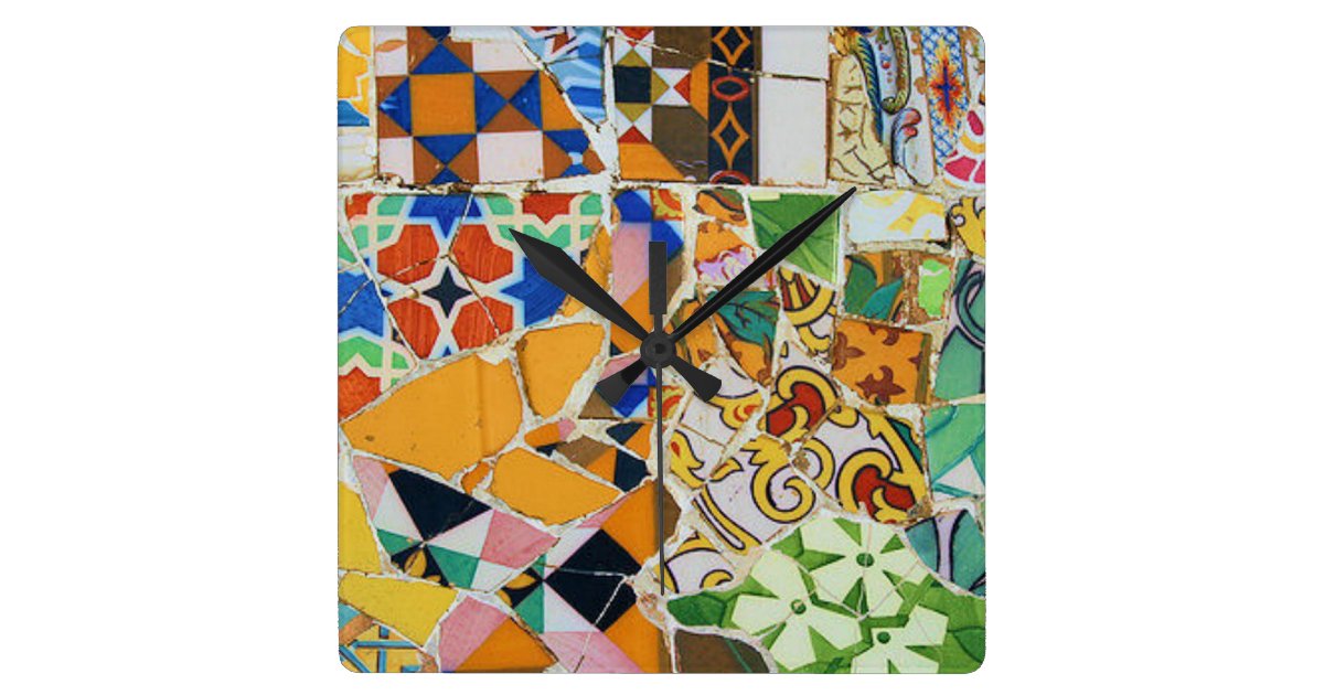Gaudi Mosaic Tile Square Wall Clock Zazzle Co Uk