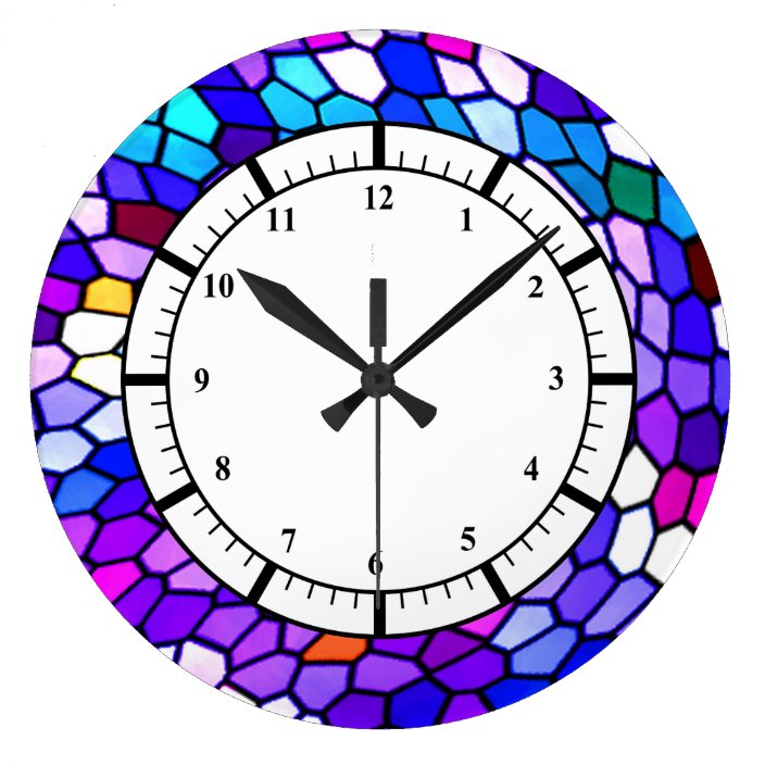 Purple Blue Pink Mosaic Tile Pattern Wall Clock Zazzle Com