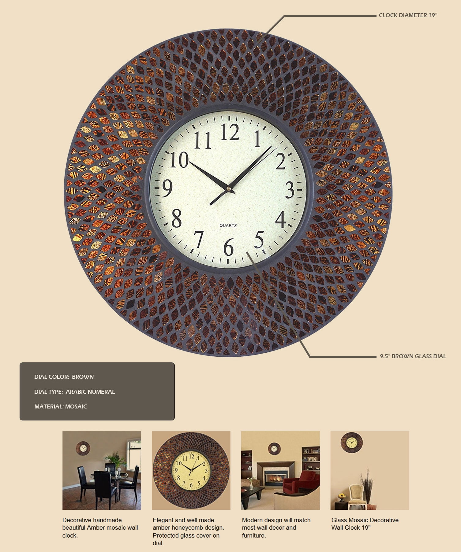 19 Amber Mosaic Wall Clock With Coffee Cement Ek Chic Home