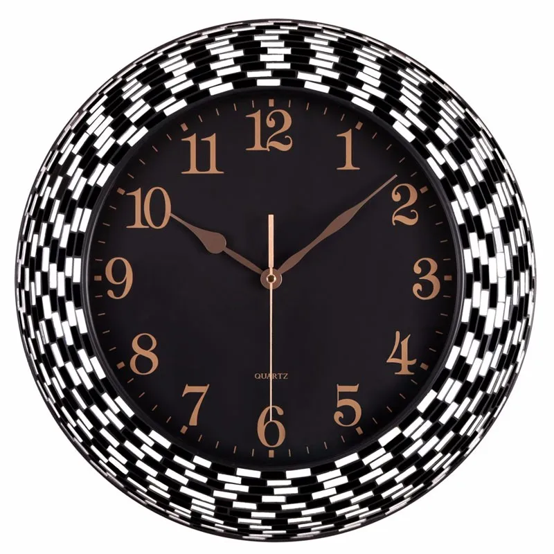 Product Design Font Pattern Black Mosaic Wall Clocks Transparent