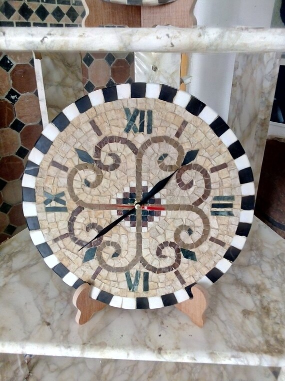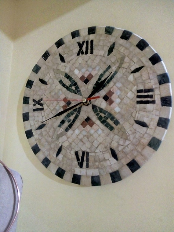 Wall Clock Marbre Mosaicwall Decor Unique Gift Idea Mosaic Etsy