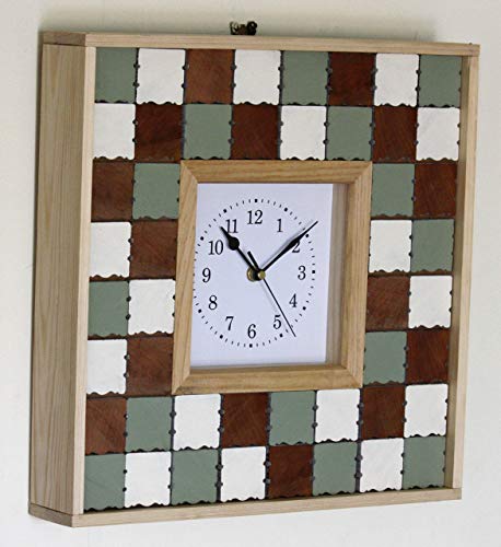 New Large 40cm Modern Wooden Mosaic Wall Clock Tiles Shabby Chic