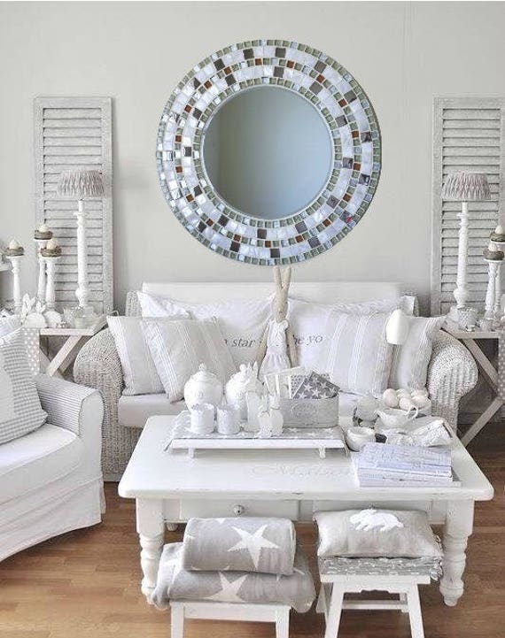 Mosaic Mirror Glass White Mother Of Pearl Home Decor Mirror Etsy