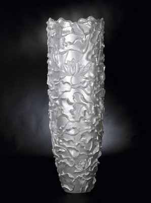 Large Obice Lotus Vase In Resin White Mother Of Pearl Finish