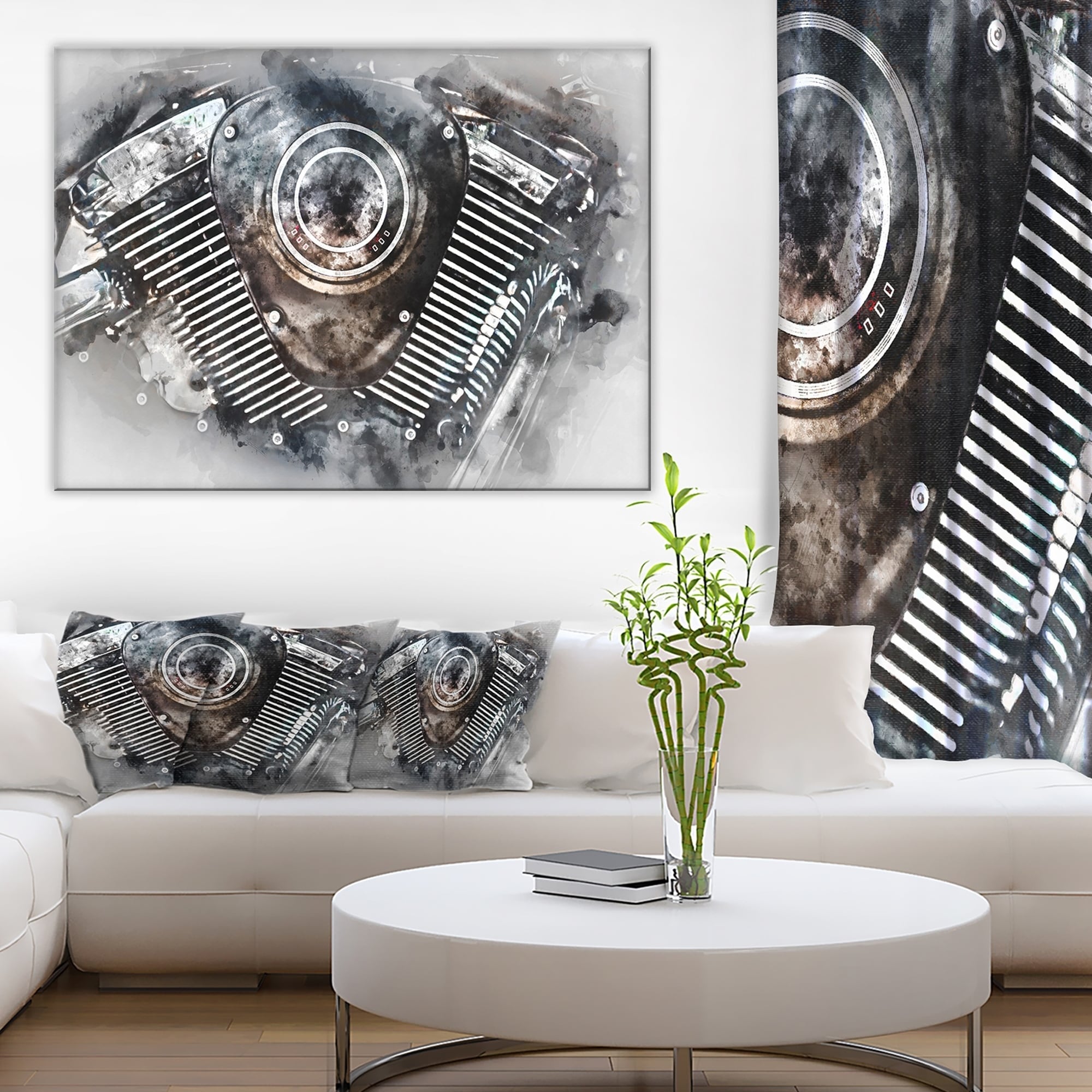 Shop Motorcycle Engine Watercolor Modern Canvas Wall Art Print