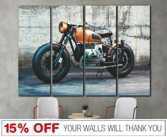 Motorcycle Canvas Wall Art Vintage Motorbike Home Decor Prints Etsy
