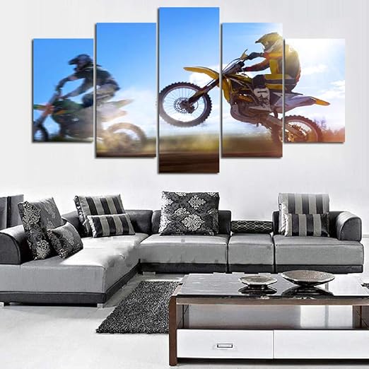 5 Pieces Outdoor Sports Motorcycle Canvas Painting Wall Art