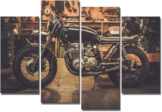 4 Piece Vintage Motorcycle Canvas Wall Art Set Contemporary