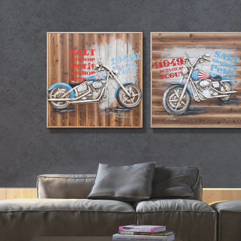 Relife Handmade 3d Carved Motorcycle Canvas Wall Art Oil Paintings