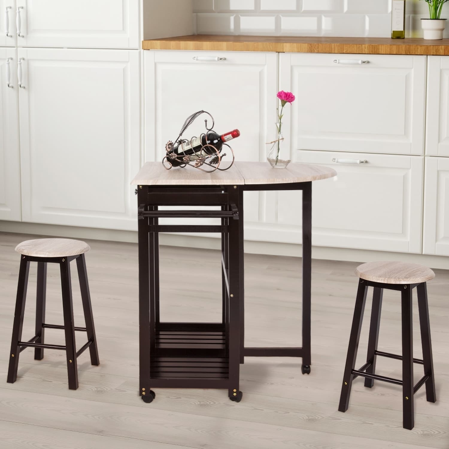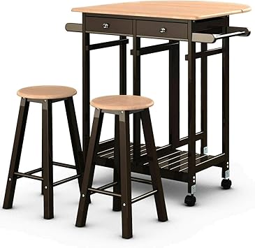Kinbor 3 Piece Rolling Kitchen Island Foldable Cart Dining Table
