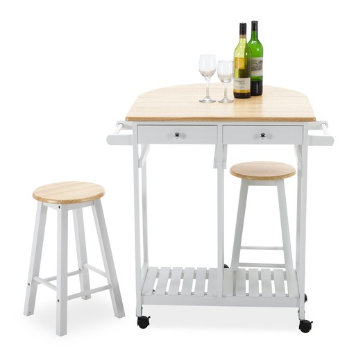 Rolling Kitchen Island Trolley Cart Drop Leaf Table W 2 Stools
