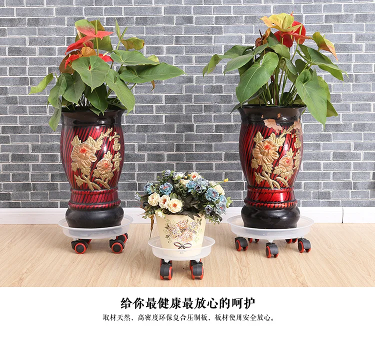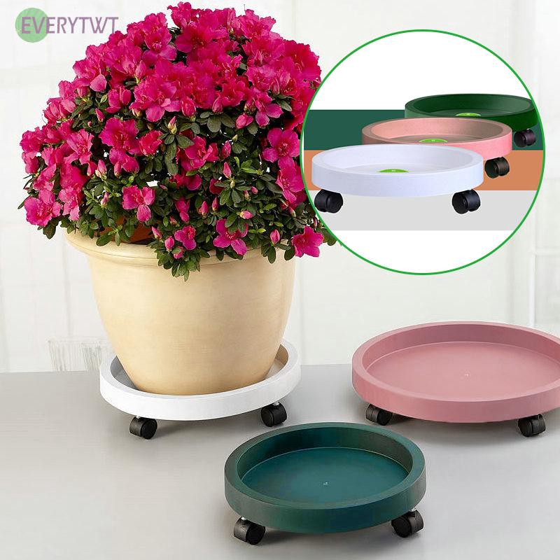 Plastic Plant Caddy Flower Planter Pot Movable Wheels Stand Rack