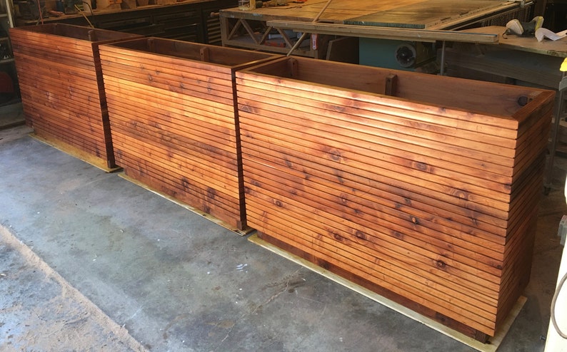 Modern 36 Inch Tall Slatted Planter Boxes Concealed Caster Etsy