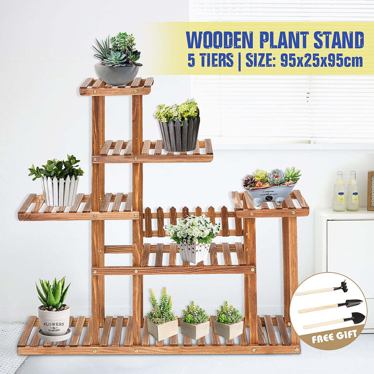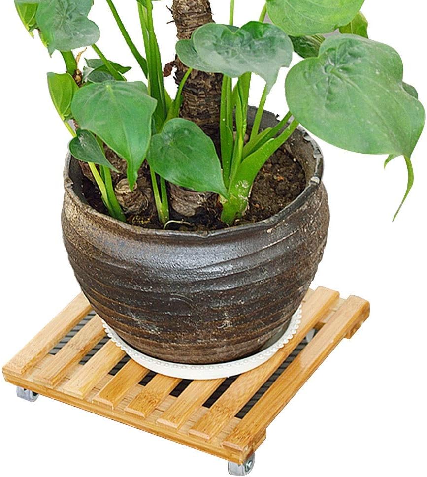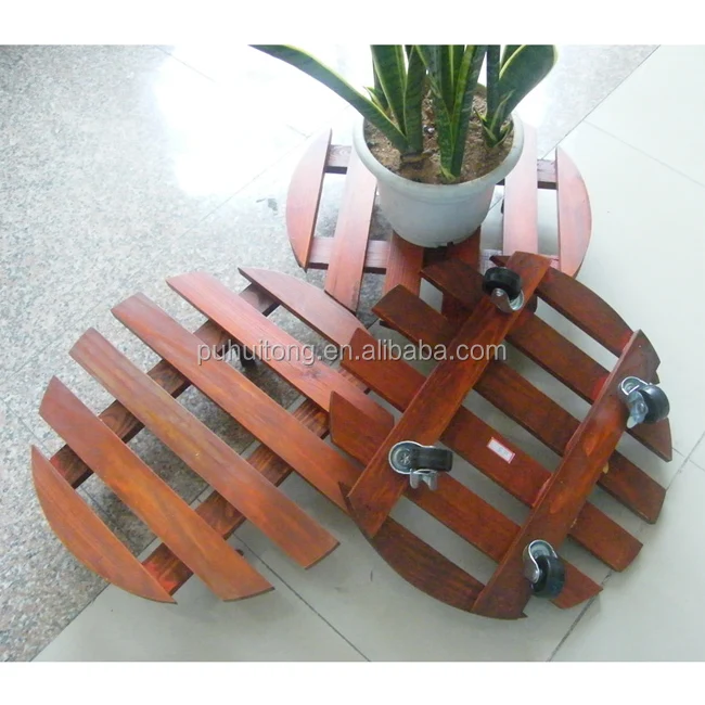 Wood Plant Stand With Wheels Flower Pot Rack On Roller Indoor