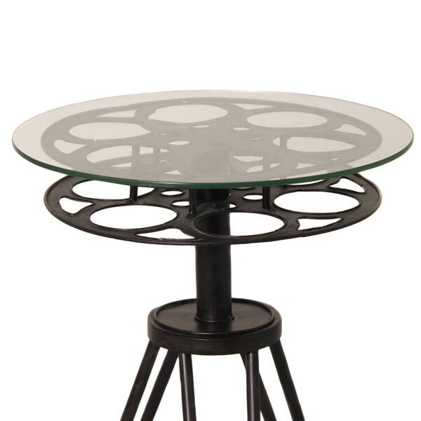 Decmode Eclectic 28 Inch Iron And Glass Movie Reel Accent Table
