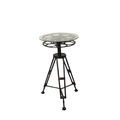 Glass Accent Table Living Room Side Furniture Metal Movie Reel