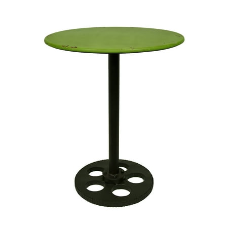 Green Vintage Finish Metal Film Reel Pedestal Side Table 23 Inch