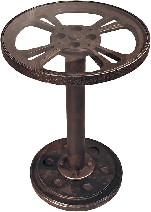 Glass Accent Table Living Room Side Furniture Metal Movie Reel
