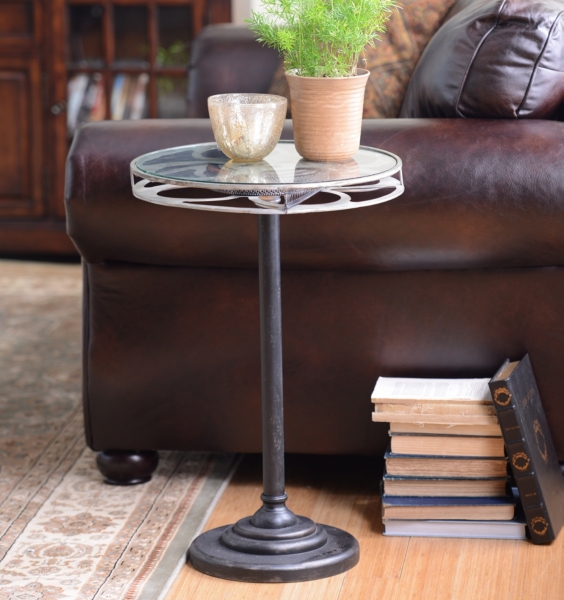 Glass Top End Tables Vintage Movie Reel Metal Accent Table Living