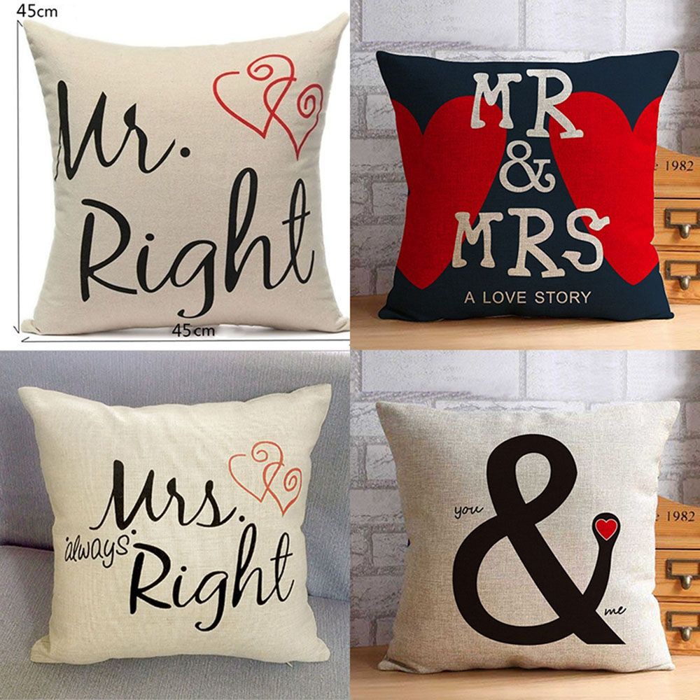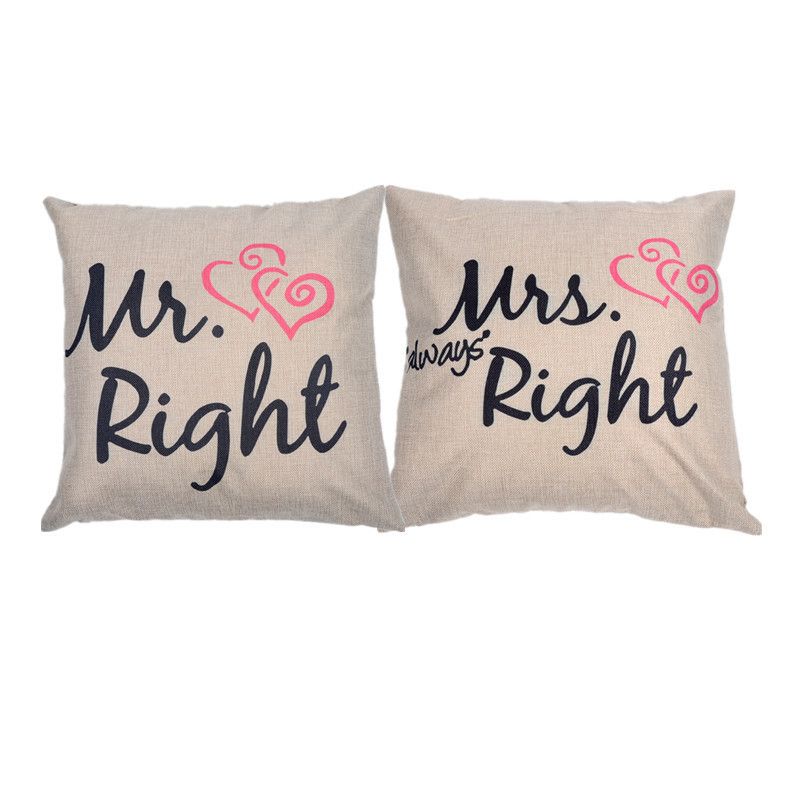 2pcs Mr Right Mrs Always Right Couple Cushion Cover Set Fancy