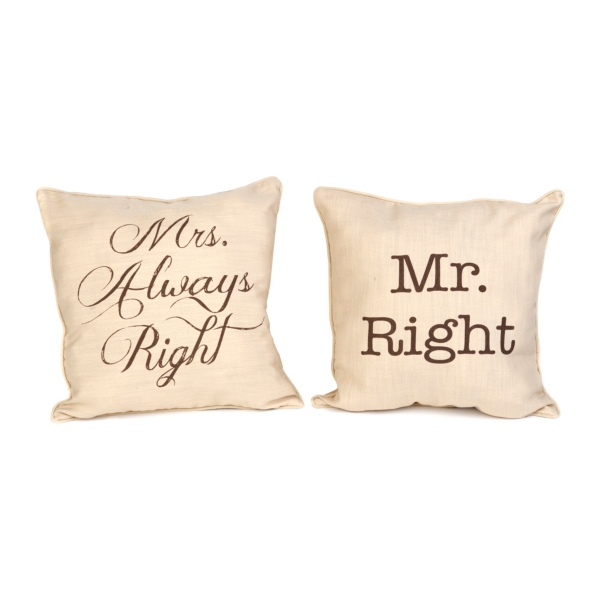 Pillow Set Mr Right Mrs Always Right Wedding Collection