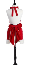 White Cotton Full Mrs Claus Apron Trimmed With Red Grosgrain