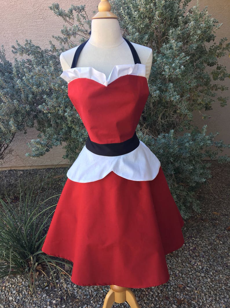 Mrs Claus Apron Red With White Trim And Black Belt Detail Etsy