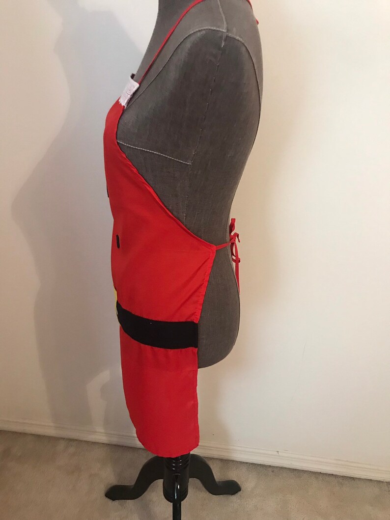 Mrs Claus Apron Red With White Trim And Black Belt Detail
