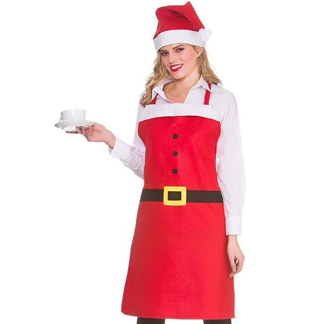 Adults Ladies Mrs Claus Santa Apron Hat Fancy Dress Xmas Christmas
