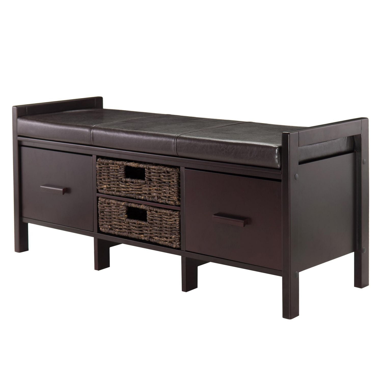 Adriana Entryway Storage Bench With Baskets Walnut Beige Winsome