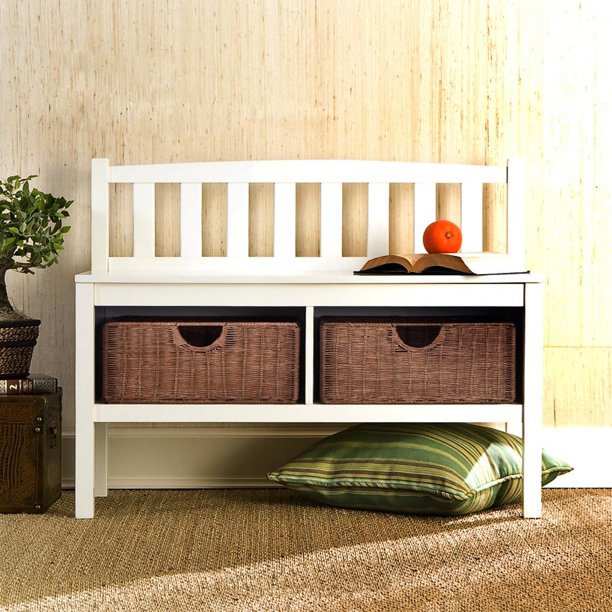 Southern Enterprises White Bench With Basket Storage Walmart Com