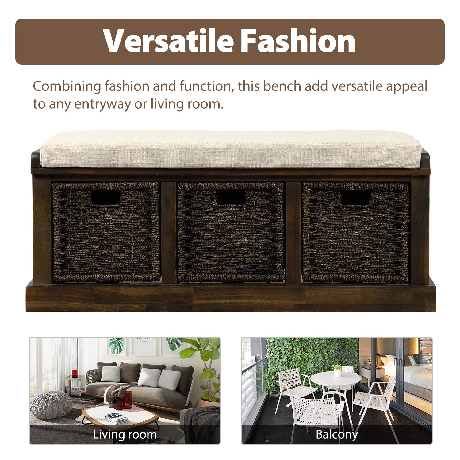 Amazon Com Storage Bench With 3 Basket Drawers Rustic Entryway