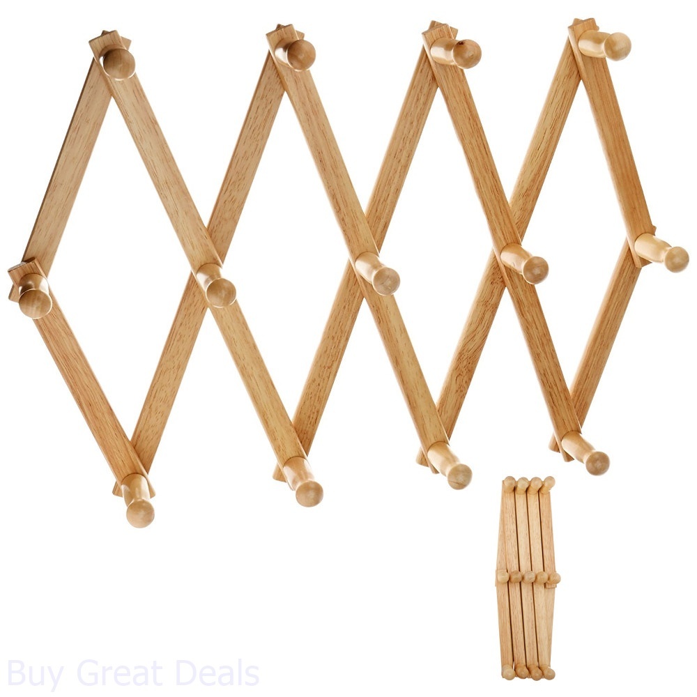 Hook Wood Expandable Wall Mount Coffee Mug Cup Holder Rack Kitchen