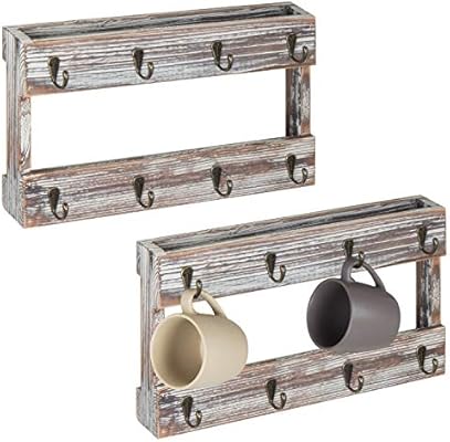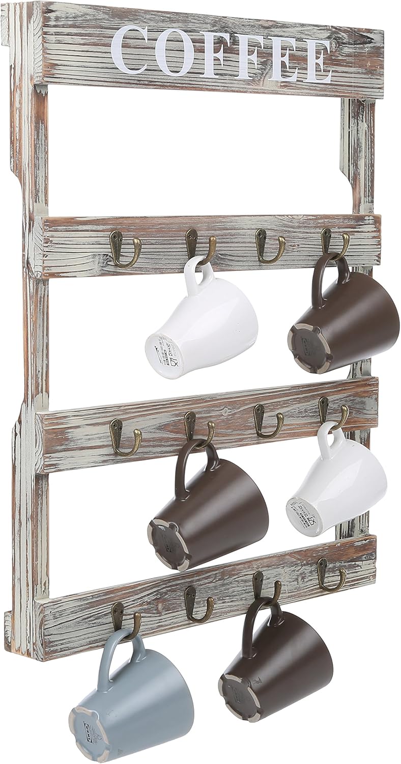 Amazon Com Mygift 12 Hook Torched Wood Wall Mounted Coffee Mug