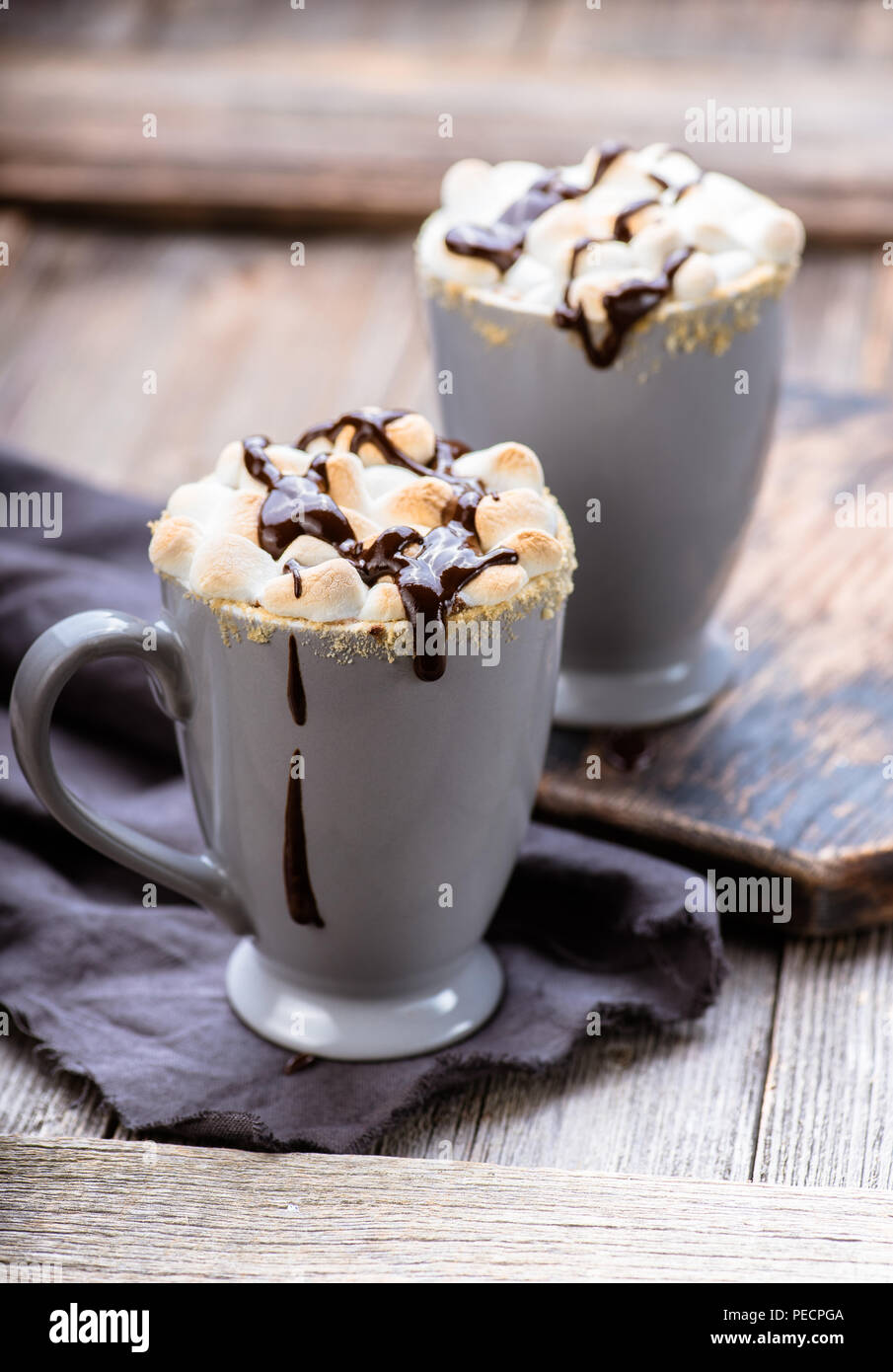 S Mores Drink Two Mugs Of Hot Chocolate With Marshmallows On A