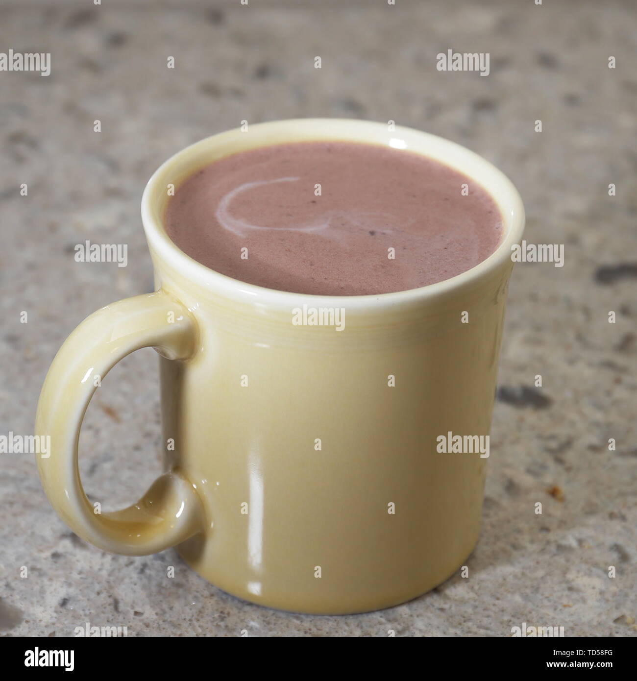 Light Yellow Mug Of Hot Cocoa On Granite Counter Top Stock Photo