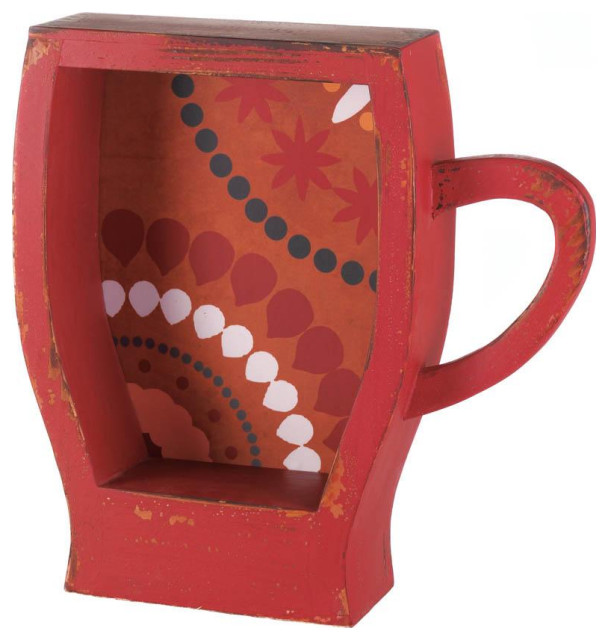 Accent Plus Wooden Distressed Red Coffee Cup Shelf Farmhouse