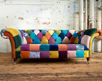 Chesterfield 3 Seater Sofa Coloful Fabric Patchwork Luxury Settee