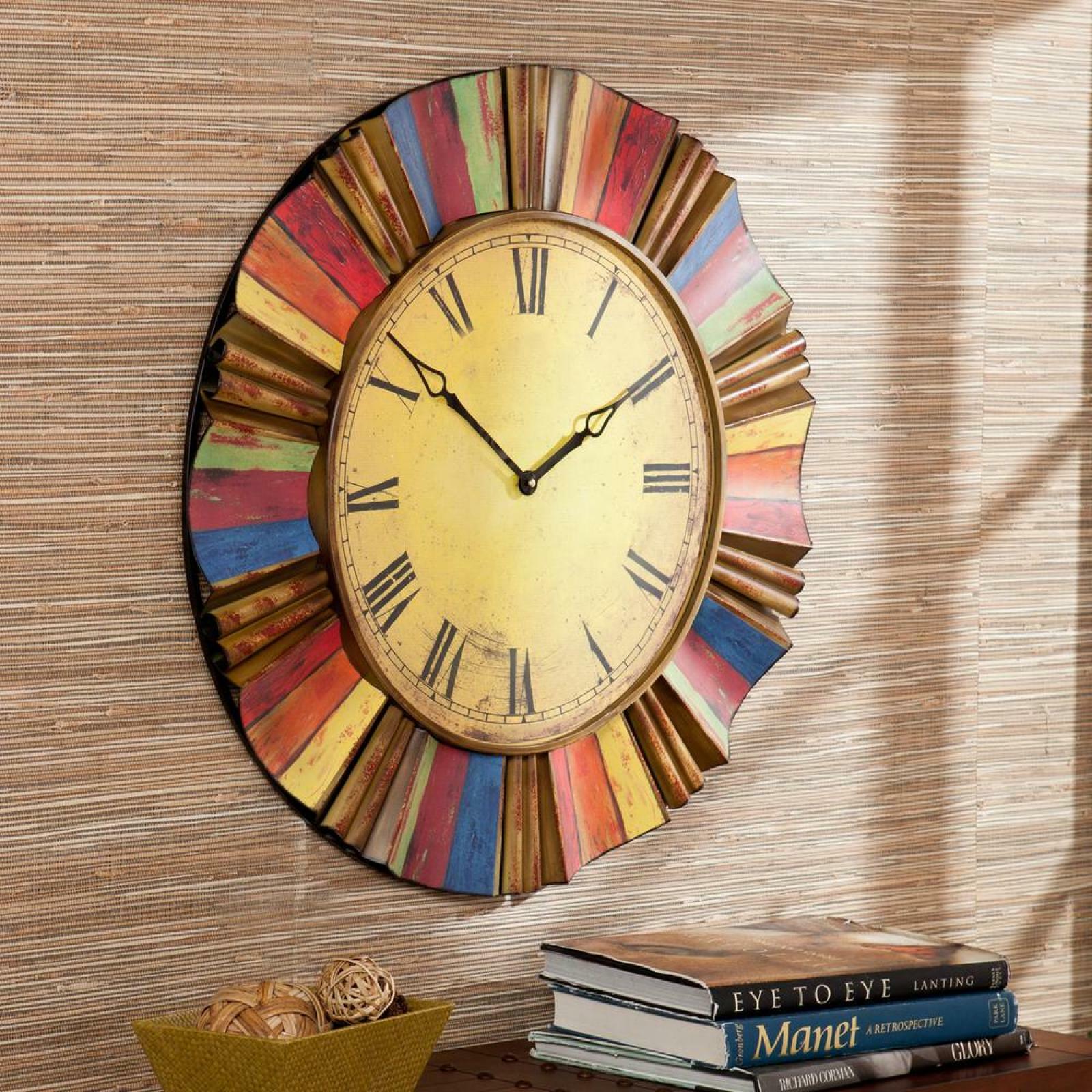 23 75 Inch Weathered Multicolored Wood Wall Clock Clock By Room