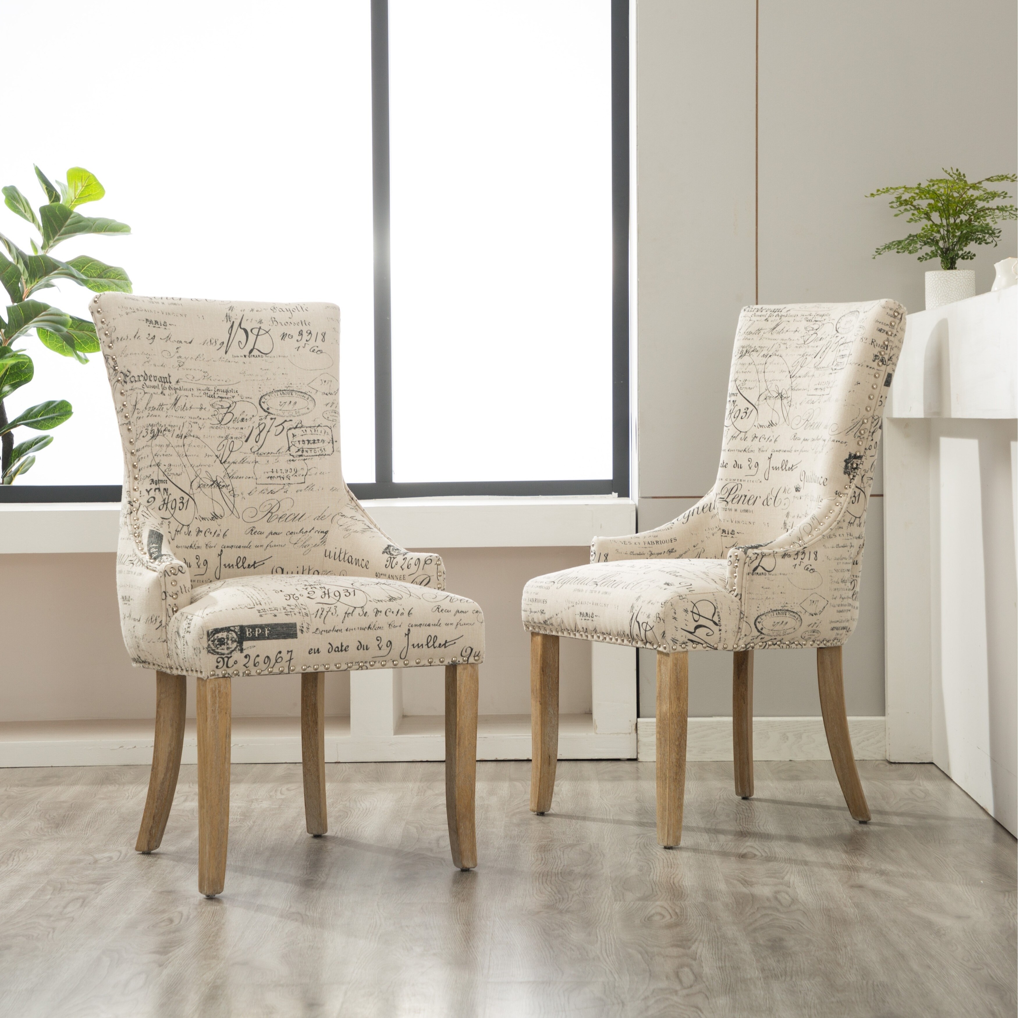 Roswell Transitional Linen Accent Chair With Brass Nailhead Trim