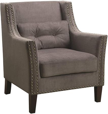 Grey Accent Chair W Nailhead Trim And Pillow Coaster Furniture