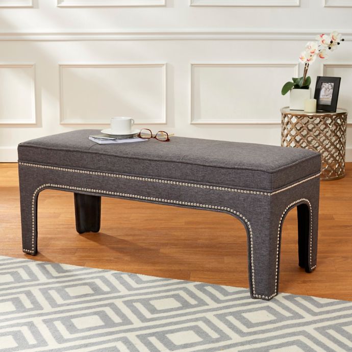 Enchanted Home Arched Bench With Silver Nailhead Trim In Grey