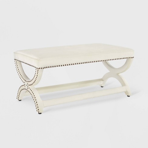 Evelyn Upholstered Nailhead Trim Ottoman Bench Cream Abbyson