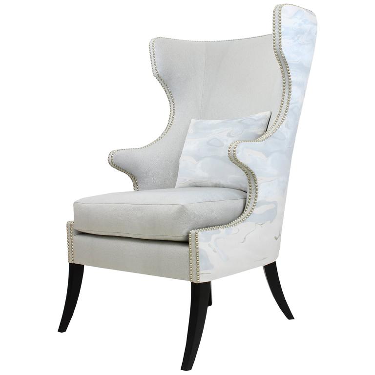 Modern Custom Wingback Chair With Nail Head Accents For Sale At