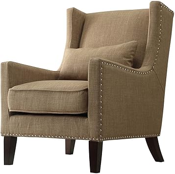Wingback Chair Linen Fabric With Nailhead Trim Canvas