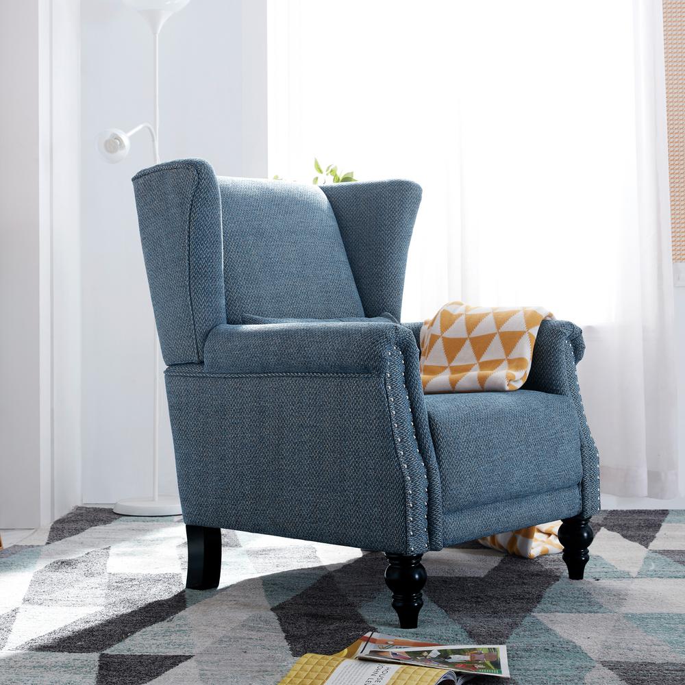 Contemporary Wingback Chair With Nailhead Trim Blue Linen