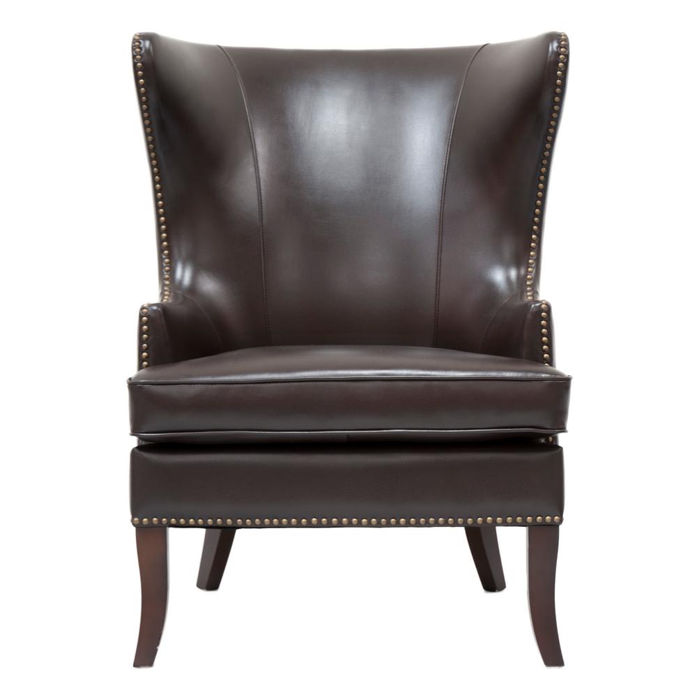 Brown Leather Wingback Chairs With Nail Head Trim
