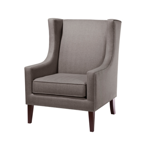 Nailhead Accented Contemporary Wingback Chair In Gray Mathis
